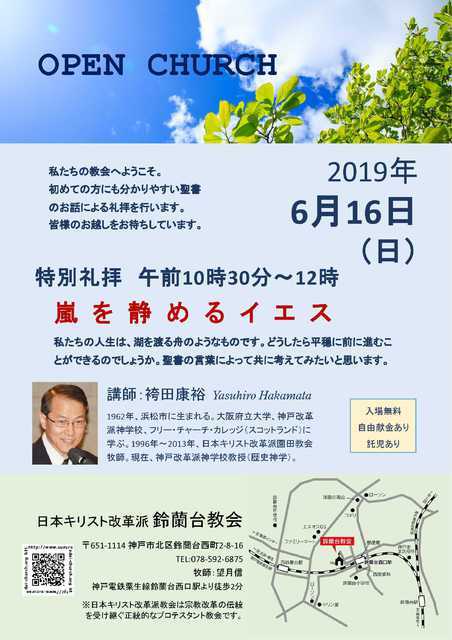 2019年6月16日(日)の日曜礼拝。初めての方向けの特別礼拝で、礼拝説教は袴田康裕牧師による「嵐を静めるイエス」です。聖書は新約・ルカによる福音書8章22節から25節になります。