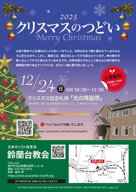 2023年12月24日(日)の日曜礼拝。